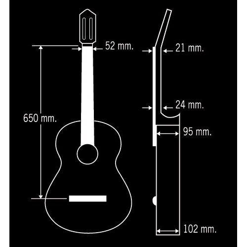 4/4-es, spanyol klasszikusgitár, tisztafa fedlappal.